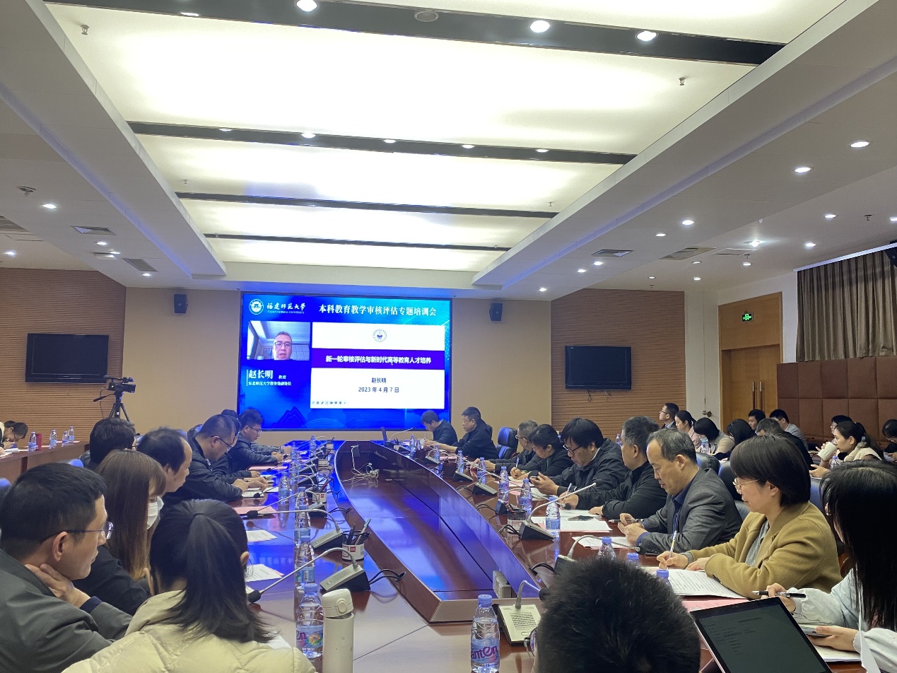 近日,彩神xl(中国)有限公司在旗山校区第十会议室召开本科教育教学审核评估专题培训会,邀请东北师范大学教务处副处长赵长明教授作专题培训。培训会由校评建办副主任杨发福主持。会议在各学院设分会场,同步开展培训。