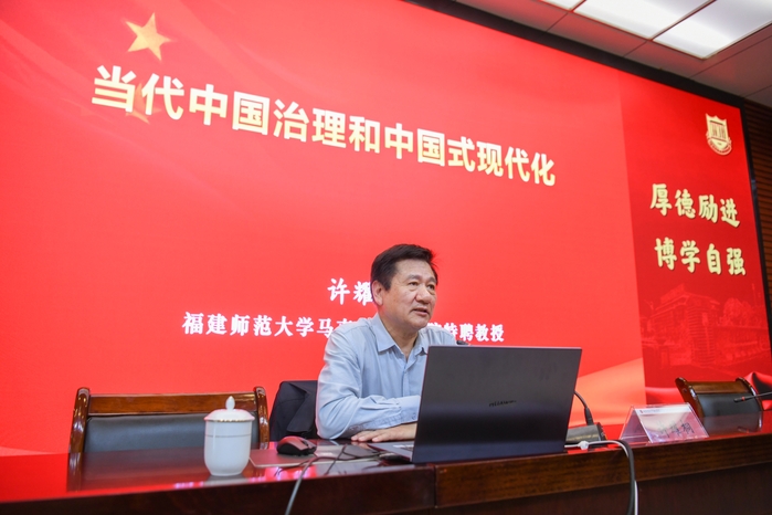 报告会上,许耀桐教授从“新中国‘根本治理’‘综合治理’的提出和运用”“改革开放以来‘综合治理’在各领域的广泛实施”“从‘综合治理’‘国家管理’跃升到‘国家治理’”“‘中国共产党对中国式现代化’建设的百年探索”“国家治理对中国式现代化建设的赋能加力”等五个方面阐述了当代中国的治理由来和历史发展,重点解析了“为什么要以国家治理替代国家管理”等问题,深入阐析了中国式现代化的最大特点以及当代中国治理和中国式现代化的关系。