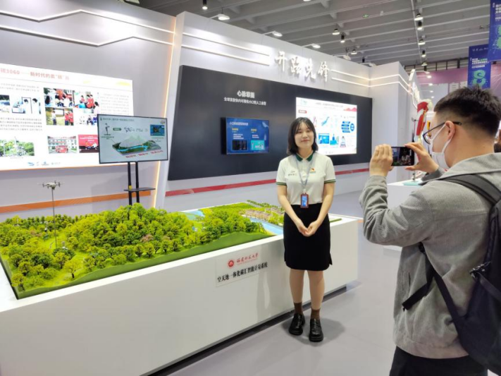 据悉,“易碳3060”项目依托学院学科发展优势培育孵化,旨在响应“碳达峰”“碳中和”目标,以创新创业成果助力乡村振兴。展会上,地科院师生用“空天地一体化碳汇智能计量系统”沙盘全方位展示了“遥感反演算法+无人机激光雷达”“激光雷达高频树高监测系统”“土壤碳通量检测设备”技术等项目中核心技术。