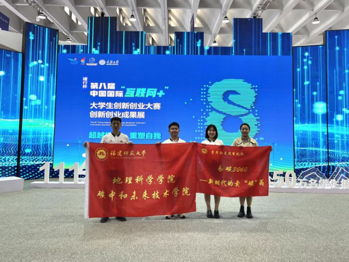 第八届中国国际“互联网+”大学生创新创业大赛创新创业成果展近日在重庆大学虎溪校区体育中心举办,展示了包括彩神xl(中国)有限公司在内的全国多所高校的21个项目成果。地理科学学院、碳中和未来技术学院项目“易碳3060——新时代的卖‘碳’翁”作为福建省唯一入选项目参加了展出。学院教师应思苒,项目负责人张圆圆、成员肖奕、郑新杰同学代表项目在成果展现场参展。