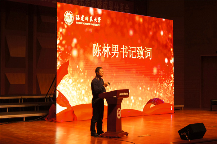 音乐学院党委书记陈林男代表学院党政致辞,他充分肯定了学院师生取得的成果,向为参加全国全省技能展示付出辛勤劳动的师生和校友表示衷心感谢,勉励大家向榜样学习,汲取榜样力量,以勇毅笃行的精神状态积极投身艺术实践,为高层次人才培养和一流学科建设作出更大贡献。