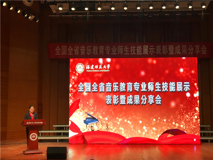 叶佳亮教授作为“2019年全国首届普通高等学校音乐教育专业教师基本功展示”评委代表发言,与大家分享了本次展示的成功与喜悦,并对音乐教育专业未来发展提出了宝贵意见建议。薛瑾老师作为“第六届福建省高校师范生教学技能大赛”指导教师代表发言,介绍大赛的经验与心得。