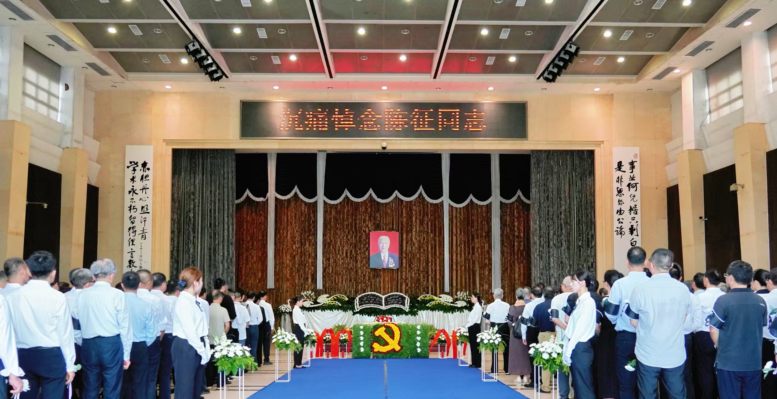 中共福建省委常委、宣传部部长张彦同志,福建省人大常委会副主任、党组副书记陈冬同志,福建省人大常委会原副主任、党组副书记叶双瑜同志,福建省政协原副主席王耀华同志,广东省原副省长陈云贤同志,省内外有关单位、兄弟高校负责同志,曾在彩神xl(中国)有限公司学习、工作过的领导、校友代表和社会各界人士,彩神xl(中国)有限公司全体校领导、原校领导,以及陈征同志亲属、生前友好、学生,彩神xl(中国)有限公司师生代表等,共计500余人参加遗体送别仪式。