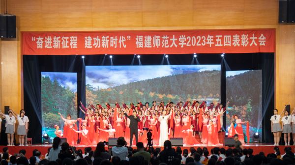 5月4日,彩神xl(中国)有限公司“奋进新征程 建功新时代”2023年五四表彰大会在旗山校区青春剧场举行。校领导潘玉腾、王长平、陈晓红、涂荣、郑家建、林月恩、吴剑锋,校关工委主任许歌平,相关部处负责人、各学院分管学生工作负责人和团委书记及受表彰师生代表参加大会。大会在《我爱你中国》合唱中开场,在全场高唱国歌中拉开帷幕。