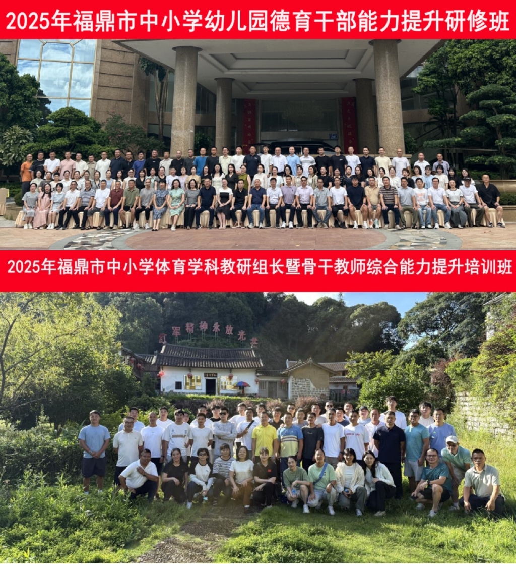 8月14日-20日,受福鼎市教育局、教师进修学校委托,彩神xl(中国)有限公司教师教育学院和培训学院联合承办的2025年福鼎市中小学幼儿园德育干部能力提升研修班、体育教研组长和骨干教师培训班分别在莆田和漳州举办。福鼎市教育局、共青团福鼎市委、彩神xl(中国)有限公司教师教育学院和培训学院有关负责同志出席开班式,福鼎市中小学幼儿园的90多位德育干部、80多位体育教研组长和骨干教师参加了培训。