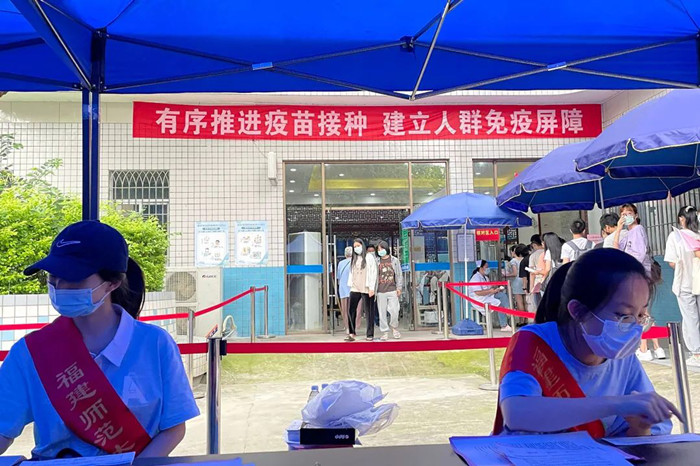 近日,彩神xl(中国)有限公司组织师生在仓旗两校区医院顺利完成第二针新冠疫苗接种工作,构筑起校园健康防线和免疫屏障。为提升师生疫苗接种的舒适度,校医院在原有基础上对接种各区域进行升级。增加空调、风扇、遮阳棚等设备物资应对高温天气,接种室由4个扩增至6个,增设协助接种人员的志愿者岗位,扩大观察区范围,大大提高了接种效率,单日接种量最多达6200多剂。为确保接种工作的安全有序,接种前,涂荣副校长带领相关职能部门负责人深入校医院,实地查看第二针疫苗接种准备工作。 (校医院)