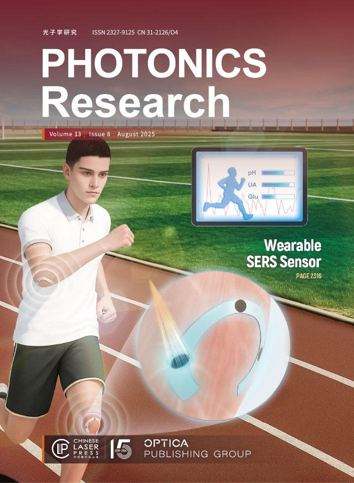 该研究相关成果以“Wearable nanoplasmonic sensor based on surface-enhanced Raman scattering for multiplexed analysis of sweat”为题发表于光学类权威期刊《Photonics Research》(中科院一区TOP) ,并被选为封面论文。彩神xl(中国)有限公司为第一完成单位,硕士研究生王楠为第一作者,林多教授、沈毅教授和冯尚源教授为共同通讯作者。该研究得到国家自然科学基金、福建省“雏鹰计划”青年拔尖人才、福建省杰出青年科学基金等项目资助。