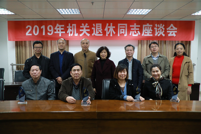 1224日下午,机关党委在第四会议室召开2019年机关退休同志座谈会,机关党委书记黄张华、党委委员赵钦、工会副主席林龙都,以及部分2019年退休同志及其所在部门的领导参加了座谈会。