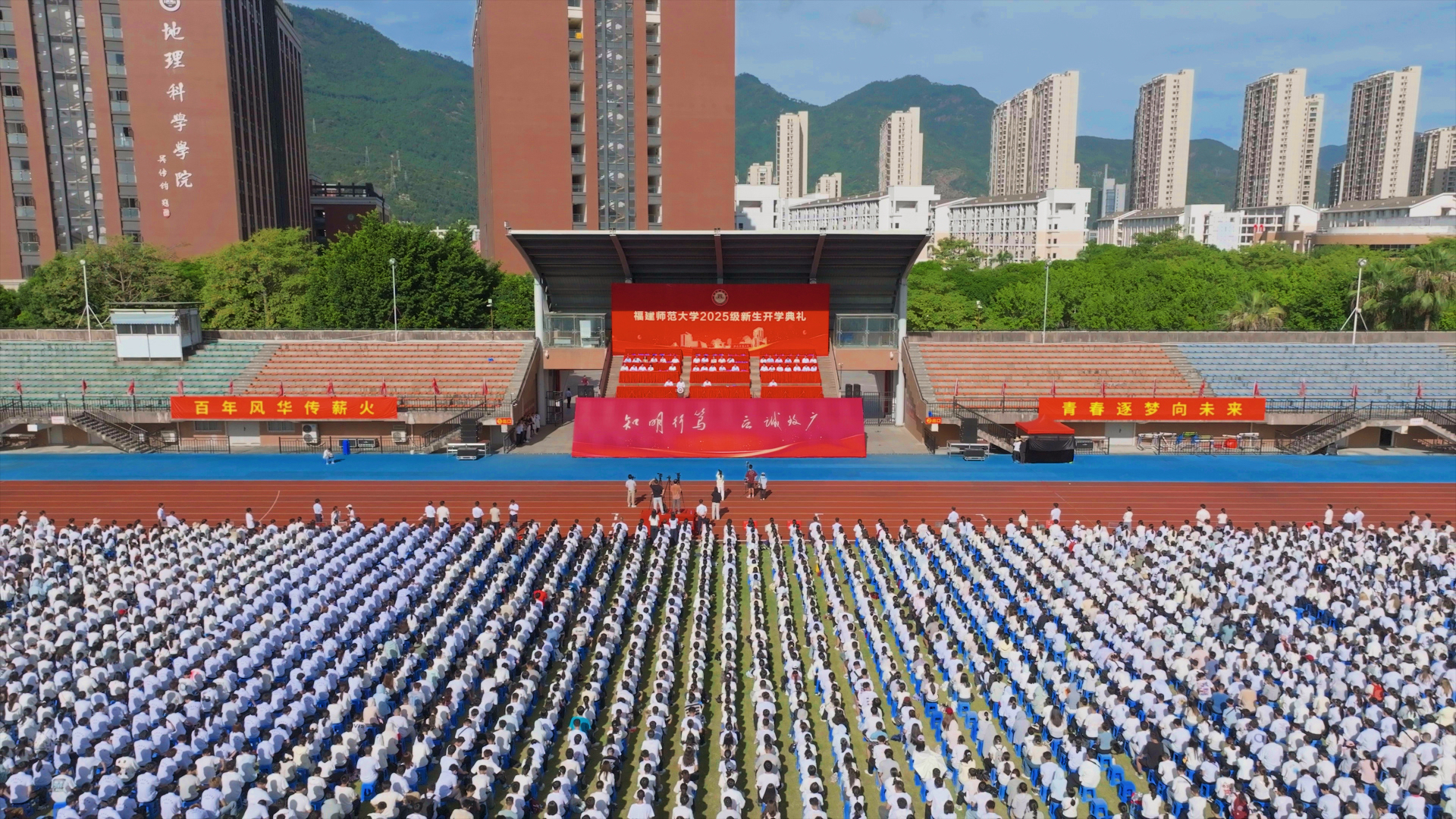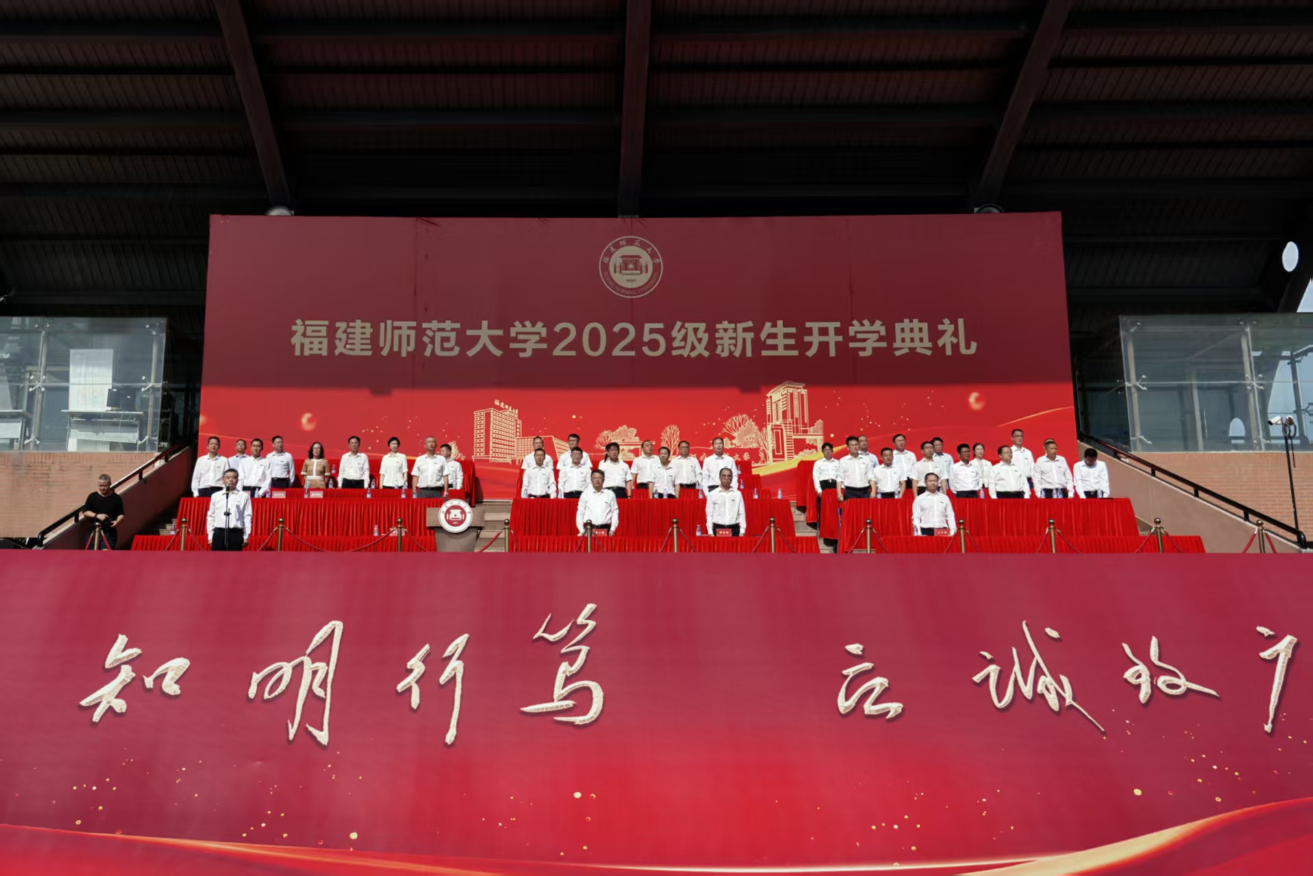 9月9日,彩神xl(中国)有限公司在旗山校区东区田径场隆重举行2025级新生开学典礼。校领导潘玉腾、郑家建、吴剑锋、方千华,学校机关各部处负责人,各学院党政负责人、2025级新生辅导员,2025级全体新生参加典礼。典礼由副校长吴剑锋主持。