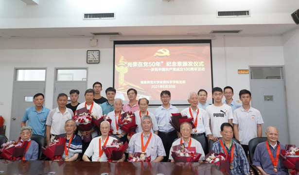 近日,体育科学学院党委在仓山校区举行“光荣在党50年”纪念章颁发仪式。院“光荣在党50年”纪念章获得者,院关工委主任王震声,院退休教师党支部的支部书记陈俊钦、组织委员兼纪检委员陈为群,院领导陈振祯、方千华、钟晓波,以及师生党员代表参加颁发仪式。仪式由院党委副书记钟晓波主持。