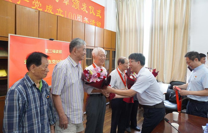 此外,针对行动不便的“光荣在党50年”纪念章获得者,学院领导通过走访慰问方式为老党员颁发纪念章,向他们致以亲切问候和崇高敬意。