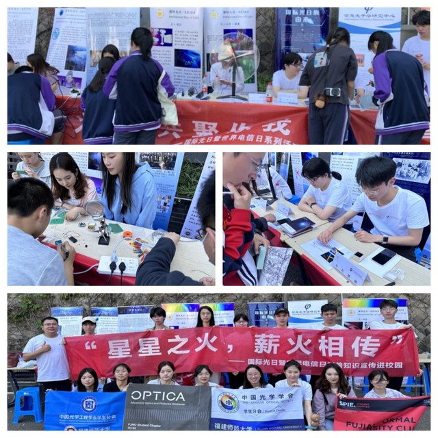 近日,光电与信息工程学院信息光子学研究中心与2022级科学与技术教育专业、电子信息专业研究生在彩神xl(中国)有限公司附属中学开展“国际光日”暨“世界电信日”科普活动,普及光学与电信知识,传播科学观念,弘扬科学家精神。