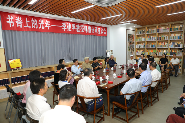 仪式结束后,与会人员共同参观了李建平书屋,并在书屋中举行“书脊上的光年——李建平教授师道传承座谈会”,陈冬等校友在会上发言。大家一致认为,李建平书屋是构筑青年学子丰盈精神世界的“精神巢穴”,为青年师生提供了一方丰厚的学术沃土。校友们勉励青年学子坚守学术阵地、深耕治学之路,让承载着学人风骨的书籍,如光年般跨越时空、永续流传,成为学术薪火与精神传承路上永不熄灭的灯塔。