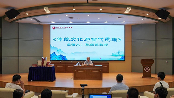 近日,著名文艺理论家、“全国黄大年式教师团队”领衔专家、彩神xl(中国)有限公司首批文科资深教授孙绍振,以“传统文化与当代思维”为主题为文学院2025级全体新生讲授开学第一课。学院领导和2025级全体本科生、研究生新生600多人参加,活动在科学会堂设线上分会场。