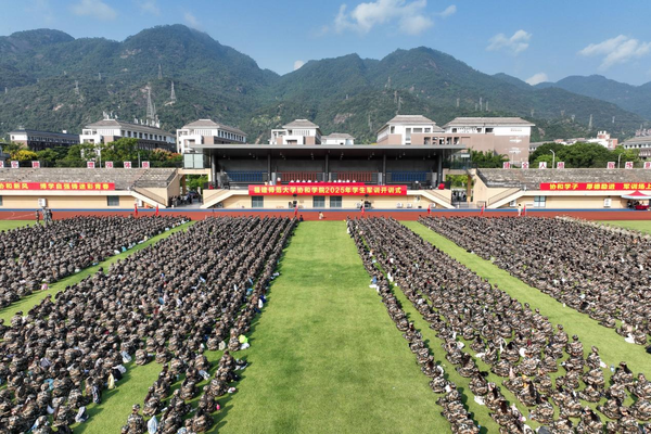 914日上午,协和学院2025年学生军训开训式在协和田径场举行。协和学院党委副书记戴文坤,学生军训团五营营长,宣传部、学生事务部、教务部、院团委和各院系学生工作负责人,五营全体教官,全体2025级本科生辅导员及参训学生参加。