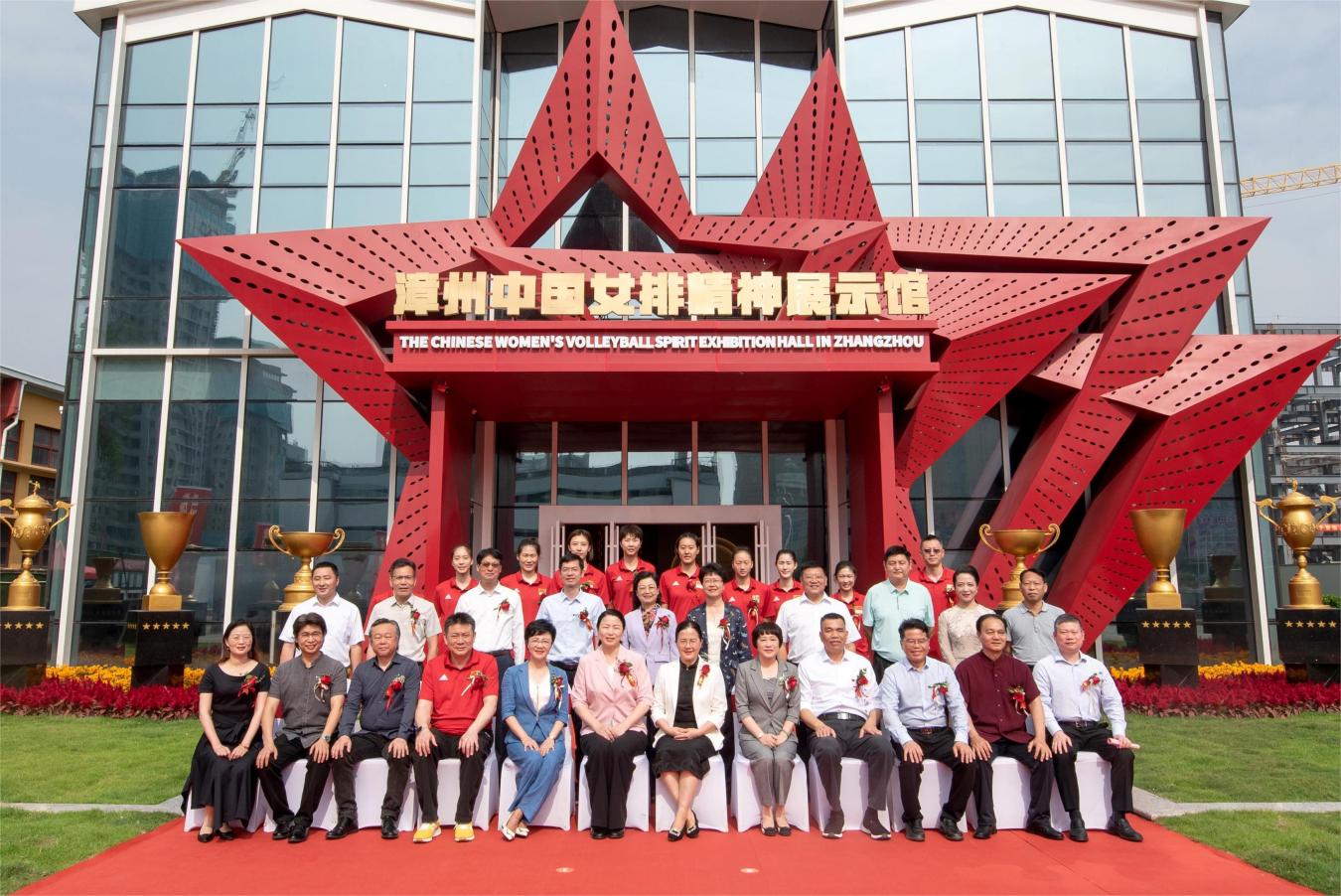 嘉宾和中国女排全体队员合影