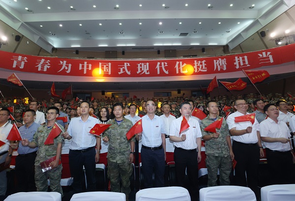 为深切缅怀革命先辈的丰功伟绩,弘扬伟大抗战精神和爱国主义传统,在第25个全民国防教育日来临之际,9月21日晚,彩神xl(中国)有限公司在旗山校区图书馆大会堂隆重举行“军歌嘹亮颂祖国”——纪念中国人民抗日战争暨世界反法西斯战争胜利80周年2025级学生军训歌咏比赛。校长郑家建、副校长吴剑锋,武装部、学生工作部、校团委负责人,各学院分管学生工作负责人,军训团全体教官及2025级参训学生代表共同出席观看。