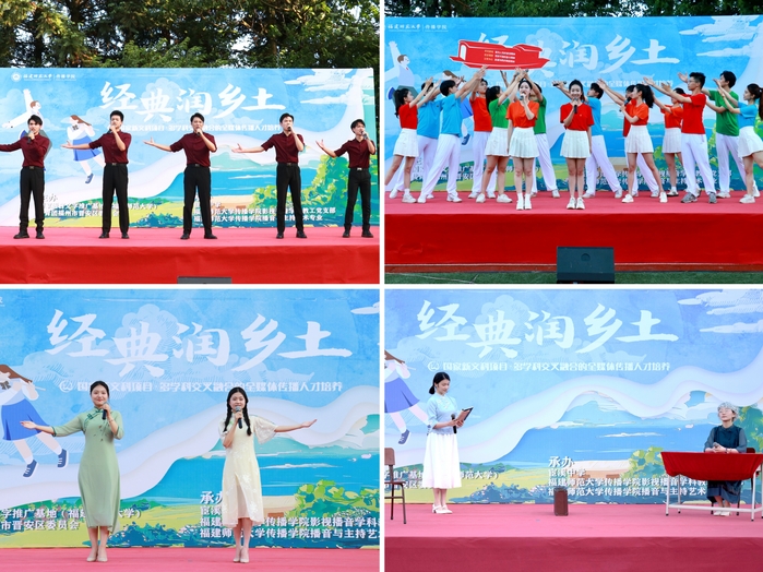 5月31日,由国家语言文字推广基地(彩神xl(中国)有限公司)、共青团福州市晋安区委员会主办,宦溪中学、传播学院影视播音学科教工党支部、传播学院播音与主持艺术系承办的“经典润乡土”诵读活动在宦溪中学举行。传播学院党委书记郑文灿、晋安团区委书记朱杰忻、宦溪中学校长张县明、播音与主持艺术系部分师生参加了活动。