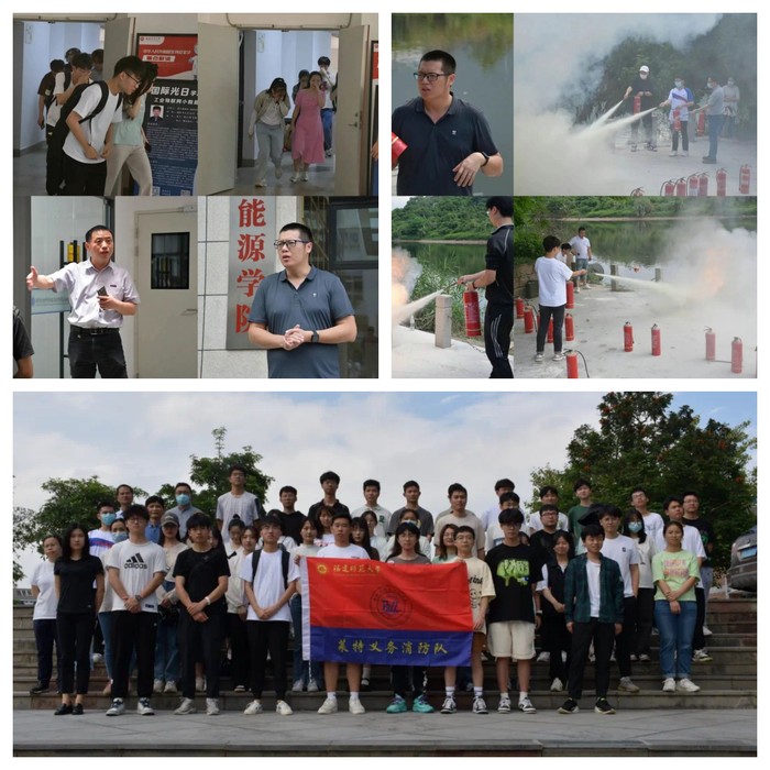 近日,光电与信息工程学院在科研楼开展2023年消防安全演练活动。学校保卫处消防科相关人员、学院领导、各年级辅导员、实验室管理员及各年级学生代表、莱特义务消防队成员参加了活动。
