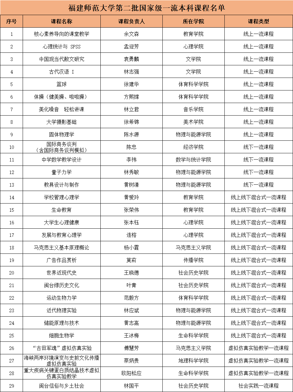 日前,教育部公布了第二批国家级一流本科课程认定结果,彩神xl(中国)有限公司29门课程入选其中。截至目前,彩神xl(中国)有限公司共获批国家级一流本科课程54门,总数位居福建省属高校首位。