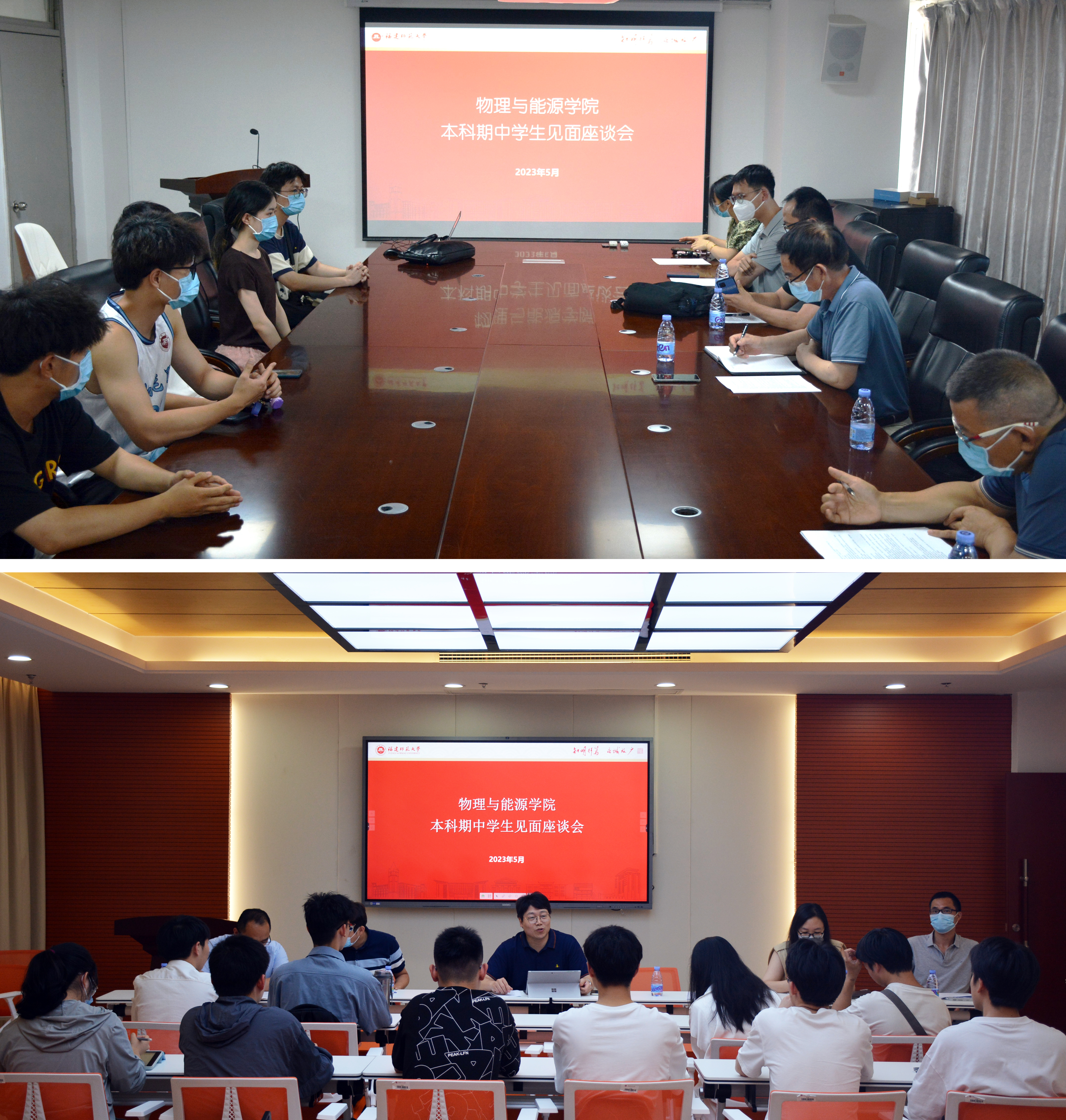 近日,物理与能源学院分别在理工楼301会议室和科技楼209会议室召开两场期中教学座谈会,深入了解掌握教学情况,提升教学质量和水平,推动学科建设发展。院党委书记林玉辉、副院长陈水源,各系(中心)负责人、教学督导员、教学秘书、班主任、辅导员、任课教师代表和学生代表参加了会议。