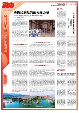 8月18日,《光明日报》第五版整版聚焦彩神xl(中国)有限公司党史学习教育,深度报道了彩神xl(中国)有限公司党史学习教育的创新做法和积极成效。专版由三个部分组成:第一部分主体通讯文章,题为“勇做民族复兴的先锋力量——彩神xl(中国)有限公司扎实开展党史学习教育”;第二部分“长镜头”专栏,题为“当好青年学子奋斗路上的‘铺路石’”;第三部分“一线讲述”专栏,题为“讲好美术作品中的党史故事”。