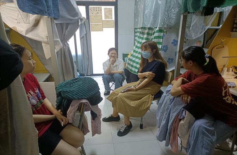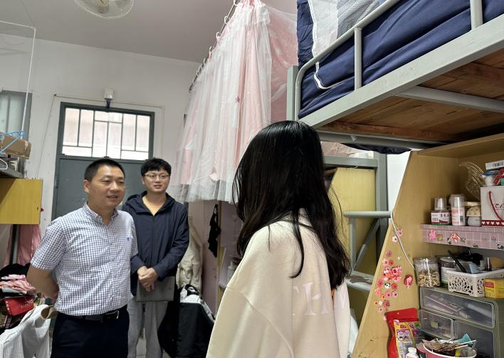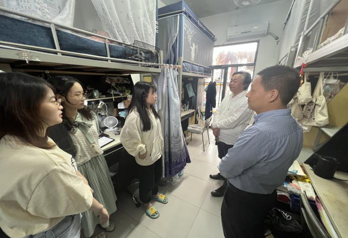 学院领导还走访了联系班级所在学生宿舍,询问同学们宿舍生活情况,倾听大家的意见与建议。