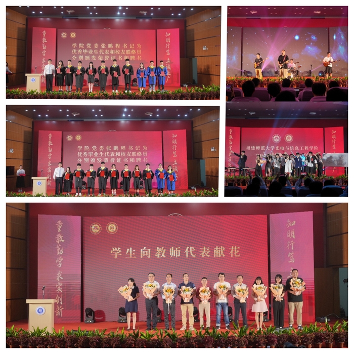 6日16日,光电与信息工程学院在旗山校区图书馆学术大讲堂举行2023届学生毕业欢送会。学院党政领导、院务委员、各系部室正副主任、教师代表、全体辅导员、2023届全体毕业生参加欢送会,欢送会由学院党委副书记张新发主持。