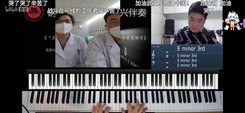 课上,王宇航还讲授了儿童歌曲《卢沟谣》的配弹。据悉,王老师将在开学前每周五晚直播,期待更多喜欢即兴伴奏的音乐爱好者和中小学音乐老师参与线上互动交流。