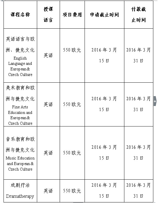 2016年3月15日下午15:00前以学院为单位将申请材料交至行政楼621办公室,电子版发送至:oice@fjnu.edu.cn(主题:捷克暑期项目),逾期不予受理。