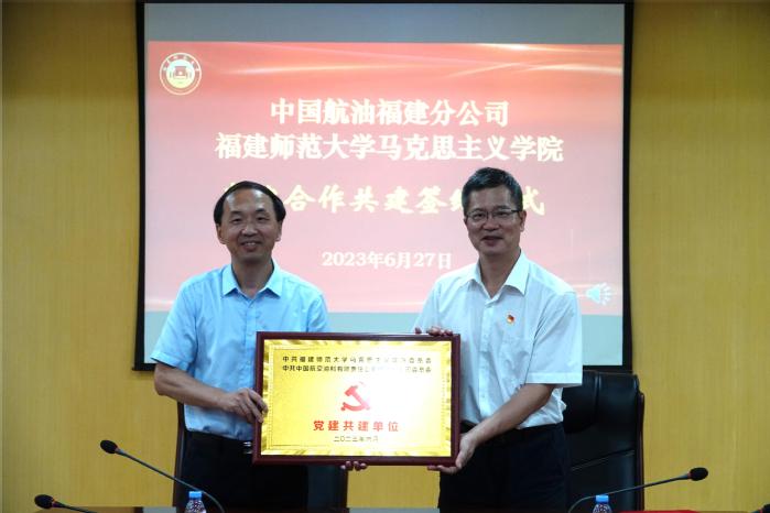 6月27日,马克思主义学院与中国航油福建分公司在人文楼举行党建合作共建签约仪式。中国航油福建分公司党委书记、经理郭兴,马克思主义学院党委书记张爱民,副书记涂莹,相关部门负责人和党员代表参加了仪式。