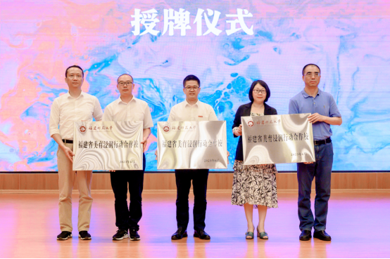仪式上,郑家建与王浩为“美育浸润”合作校授牌并与支教团队合影留念。郑家建在致辞中介绍了学校美育教育发展情况,邀请平潭师生赴彩神xl(中国)有限公司进修和学习,叮嘱支教团队学生不负教师人才后备队的使命担当,圆满完成此次支教行动。