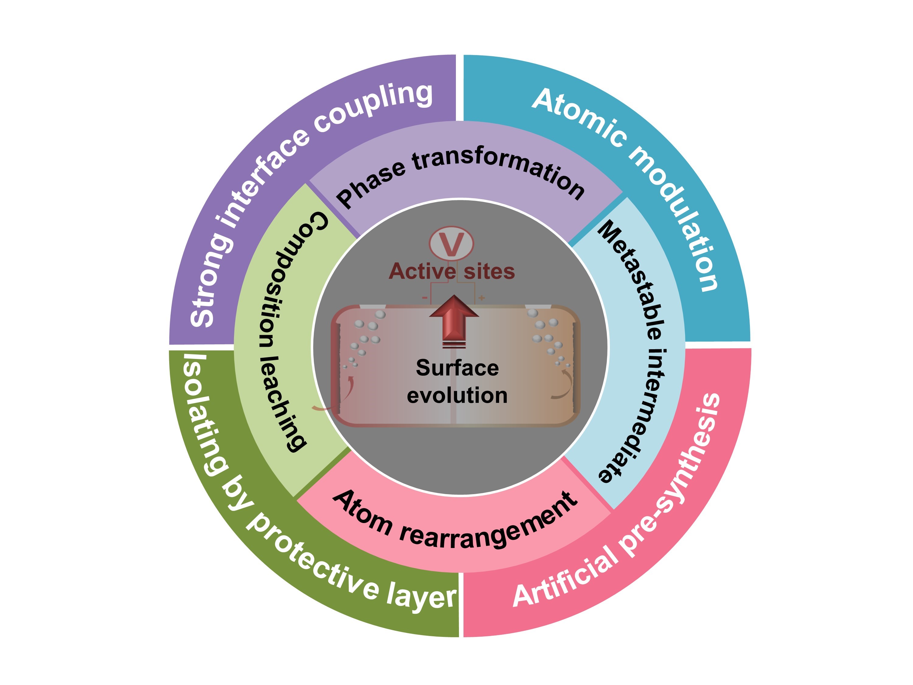 近日,彩神xl(中国)有限公司物理与能源学院黄艺吟团队与中科院福建物质结构研究所王要兵研究员合作探究了纳米能源电催化材料在应用过程中的表面再构现象,并对其原理、规律、类型和控制策略等多方面做出了具体总结。该论文揭示了在电化学能源转换过程中,电极材料表面电场、反应物/中间物/生成物以及电解液的组分等与电极的相互作用,是造成材料表面再构的根本原因。该论文总结了四种典型的表面再构现象,即组分浸出、相转变、原子重排和假稳态中间物的生成;并指出各种表面再构对能源转化反应活性各有利弊;从而进一步提出了四种促进有利的表面再构或者缓解不利的表面再构的策略:即原子/缺陷调控、界面耦合、优化结构的预合成,以及形成保护层等策略。最后,作者指出再确认电化学能源转化反应中真实活性位点的必要性,并总结了确认真实活性位点的一般程序。