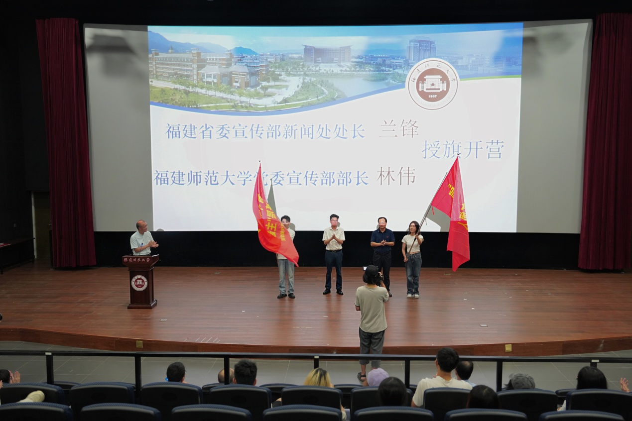 仪式上,兰锋、林伟为社会实践团队代表授旗开营。传播学院院长谢宗贵教授在致辞中希望同学们以青年新闻人视角,深入观察干部群众推动高质量发展的工作状态,用笔用镜头用声音制作出优秀作品。