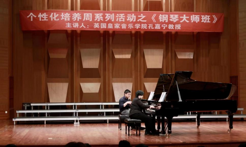 课程着重讲解展示了贝多芬奏鸣曲,持续四个多小时。课堂上,孔嘉宁教授结合学院四位同学演奏的作品,从音乐风格、和声织体、旋律主题动机等方面对贝多芬不同时期的钢琴奏鸣曲作了比较与讲解。同时,针对同学们演奏中出现的问题,孔教授边示范边讲解,从多个方面提供解决方法。孔教授强调,要注意乐思、句法、呼吸、概念重音等,钢琴演奏不仅是弹奏谱面上的音符与标记,还要诠释出作曲家赋予作品的情感。课程最后,孔教授演奏了莫扎特《C大调第十号奏鸣曲》(K.330)的第三乐章,其精湛细腻的演奏让师生受益匪浅。