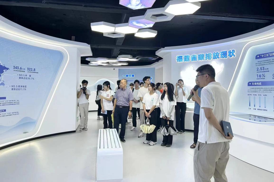 实践队成员还参观了福建省节能中心双碳展示馆,了解政府在推动产业结构和能源结构调整方面的行动计划,及福州市在零碳时代的绿色成果和绿色未来;学习福州市利用新能源基地和生态碳汇基地发展控碳先进生产力,引领控碳工作构建新发展格局的优势做法。实践队员纷纷表示,通过此次实践活动,对“双碳”目标有了更加深入的认识,作为环资学子,深感使命在肩,今后将努力学习,为美丽中国建设贡献力量。