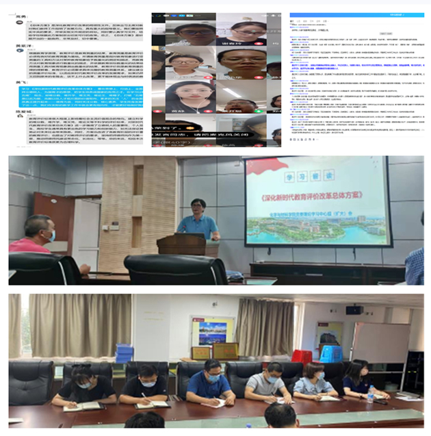 与会人员认真学习了《总体方案》。会议强调,要贯彻落实习近平总书记关于教育的重要论述和全国教育大会精神,全面准确把握《总体方案》的精神要义和改革部署,在学懂弄通做实上下功夫;要完善立德树人体制机制,扭转不科学的教育评价导向,坚决克服唯分数、唯升学、唯文凭、唯论文、唯帽子的顽瘴痼疾,提高教育治理能力和水平;要切实抓好《总体方案》的贯彻落实,各系主任要组织全系教师、各教工党支部书记要组织教工党员以线上线下相结合的形式开展学习,做到全员全程全覆盖。
