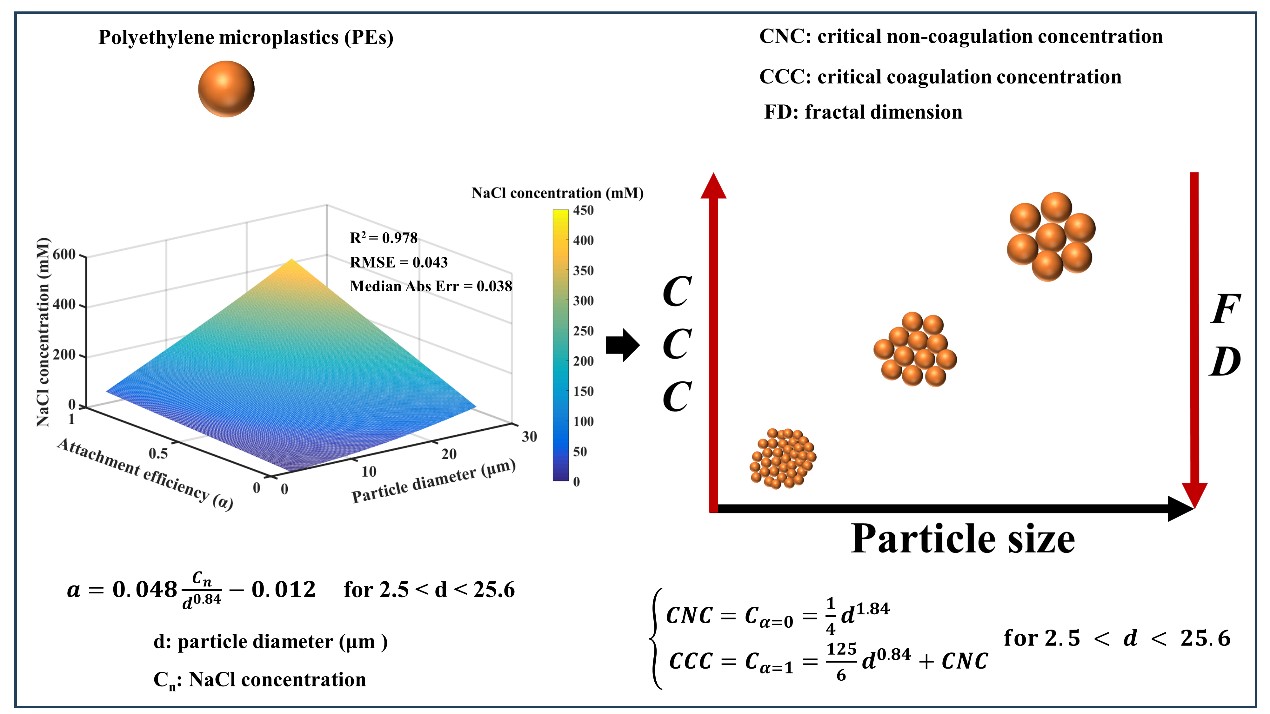 微塑料(MPs)是近年来受到广泛关注的新型污染物之一。河口是MPs从陆地向海洋输运的重要通道,了解河口水环境中MPs的聚集过程,有助于理解河口MPs的运动。彩神xl(中国)有限公司地理科学学院陈兴伟教授团队2021级博士研究生王毅以天然水环境中分布最广泛的聚乙烯MPs为研究对象,通过室内实验模拟和理论分析,揭示MPs在不同环境条件下的聚集过程。