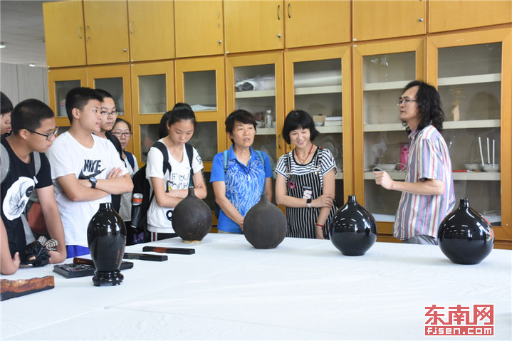 学生参观福建师大漆器展览馆认真听讲(福建师大供图)