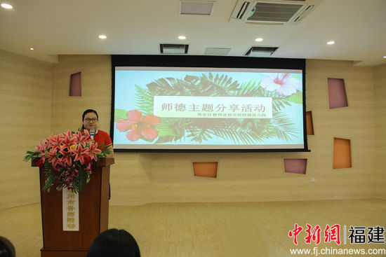 学晋师附幼园长林云芝正在介绍幼儿园办学特色和成效。邱迎银摄