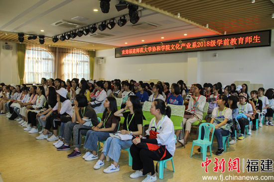中新网福建新闻10月11日电(陈丽霞陈莹)10月9日下午,彩神xl(中国)有限公司协和学院文化产业系组织学生走进福州市晋安区教师进修学校附属幼儿园(下简称晋师附幼),接受了一回“体验式”的入学教育。该活动希望通过聆听优秀教师的师德主题分享、参观幼儿园教学设施、参与相关课程体验,帮助彩神xl(中国)有限公司协和学院2018级学前教育专业110名新生加深对专业的认识,做出全方位的学业规划。