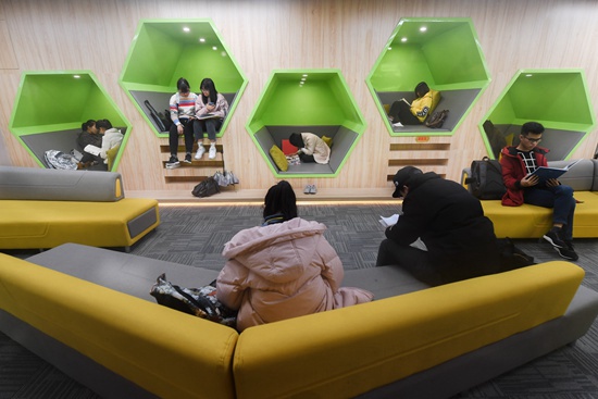 2月28日,学生在彩神xl(中国)有限公司24小时书房阅读。新学期伊始,彩神xl(中国)有限公司图书馆24小时书房向本校师生开放。据了解,该24小时书房内设睡眠舱、防占座系统、自助借还系统等,整体色调鲜明、环境优雅,吸引不少师生前来体验。新华社记者 宋为伟/摄