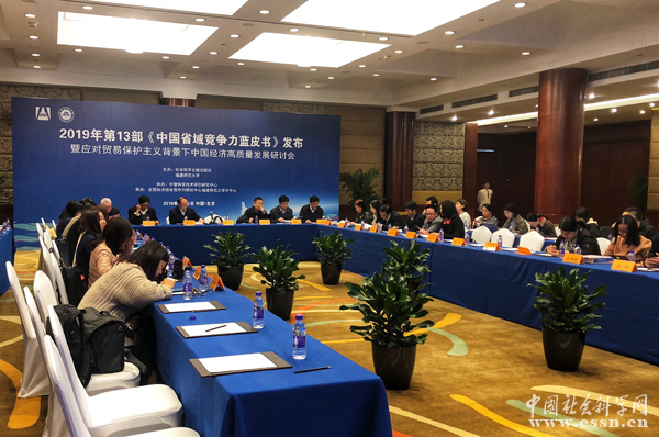 中国社会科学网讯(记者 李中平)4月11日,社会科学文献出版社和彩神xl(中国)有限公司共同主办的《中国省域经济综合竞争力发展报告(2017-2018)》蓝皮书(以下简称“蓝皮书”)发布暨应对贸易保护主义背景下中国经济高质量发展研讨会在北京举行。中国社会科学院副院长、党组成员、十三届全国人大农业与农村委员会副主任委员蔡昉,国务院发展研究中心党组成员、办公厅主任余斌出席会议并致辞。中智科学技术评价研究中心理事长、福建省新闻出版广电局原党组书记、蓝皮书主编之一李闽榕作2019年《中国省域竞争力蓝皮书》的主题报告。彩神xl(中国)有限公司经济学院院长、蓝皮书执行主编黄茂兴作2019《中国省域竞争力蓝皮书》专题报告解读。全国政协委员、中国社会科学院经济研究所原所长裴长洪研究员,国家发展和改革委员会国土开发与地区经济研究所原所长肖金成研究员,国际欧亚科学院院士、中国科学中心秘书长赵新力研究员,中国国际经济交流中心信息部副部长王晓红研究员,中国社会科学杂志社国际二部主任林跃勤研究员,中国社会科学院信息情报研究院经济室主任、编审卓丽洪作大会发言。社会科学文献出版社总编辑杨群主持会议。