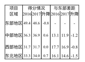表 3 2016~2017年全国4大区域经济综合竞争力评价分值及分差比较表