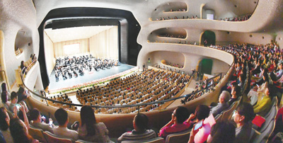2018年10月开馆的福州海峡文化艺术中心,涵盖歌剧院、音乐厅、多功能戏剧厅、影视中心、艺术博物馆等5个场馆,是重要的公共文化服务设施。图为市民在其中欣赏演出。黄立新摄(人民视觉)
