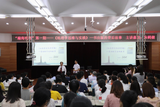 在朱鹤健教授的分享过程中,“坚持”二字常被提及。《地理学思维与实践》一书从酝酿到出版经历了16个年头,朱教授将这16年的坚持总结为“三不精神”——认定目标不动摇、遇到困难不放弃、简单重复不厌烦。此外,他以自己的经历告诫青年们不要在该奋斗的时光选择安逸:“我是新中国培养的第一代大学生,人民哺育了我,要懂得感恩。新时代是奋发、奋斗、奋进的时代。我不能坐享改革开放红利,人虽老,情未了,应有所作为。‘犹记擎桅杆,后生好远航’悬于心头。这个信念迸发出力量,是如今教书、写书的精神支柱。有了信念,就会指引正确的人生方向,调动一切情感,挖掘一切潜能,产生主动的、积极的、支撑自己不断前进的力量,最大限度地实现自我。”