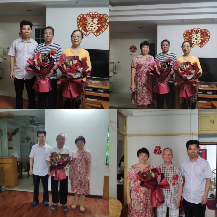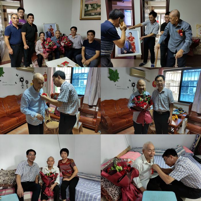在重阳佳节之际,物理与能源学院开展走访慰问老同志活动,大力弘扬中华民族尊老敬老的传统美德。学院党委书记林玉辉、副书记黎胜禄、院工会主席林秀敏等走访慰问“钻石婚”吴茂明夫妇,“金婚”尤仪夫妇,以及卢介高、白炳汉等6位90岁以上老寿星,为退休老同志送去节日问候和亲切关怀。