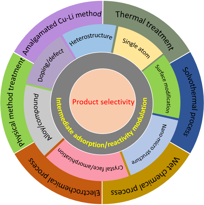 ECO2RR用的Cu基材料合成策略及结构工程对中间体调控示意图