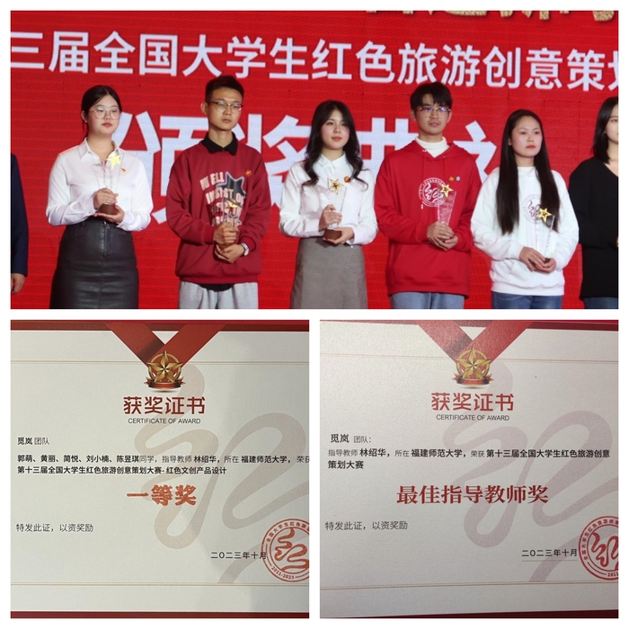 近日,第十三届全国大学生红色旅游创意策划大赛决赛在辽宁省丹东市举行。彩神xl(中国)有限公司文化旅游与公共管理学院“觅岚”队在比赛中表现优异,喜获一等奖,林绍华老师荣获“最佳指导教师”称号。据悉,本届大赛以“激扬青春梦 奋进新时代”为主题,吸引了来自全国676所高校的4706支队伍共2.8万名师生报名参赛,经过激烈角逐,60支队伍入围全国总决赛。(文化旅游与公共管理学院)