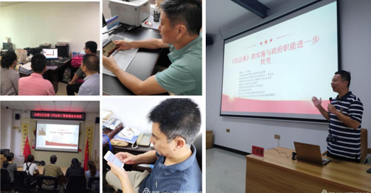 近日,仓山区法学会、仓山区司法局在金山司法所举办《民法典》系列宣讲活动启动仪式。彩神xl(中国)有限公司法学院副教授丁兆增受邀围绕“《民法典》的实施与政府职能进一步转变”为主题开展专场授课,并通过“云课堂”平台进行直播。仓山区各司法所负责人,干部群众代表50余人在现场参加了仪式和听课,全区干部群众3000余人在线观看学习。